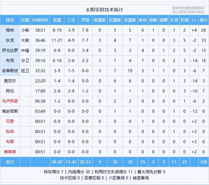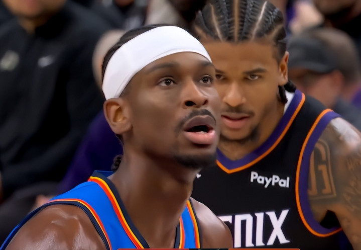 下半场调整回来,双方的比分交替上升,布克连续得分,对飙亚历山大。太阳队的进攻断电,失误增多,卡鲁索三分命中,分差来到两位数。伊戈达罗吃饼暴扣,格林里突外投,亚历山大强势回应,个人得分达到30分,季后赛连续30+追平杜兰特。